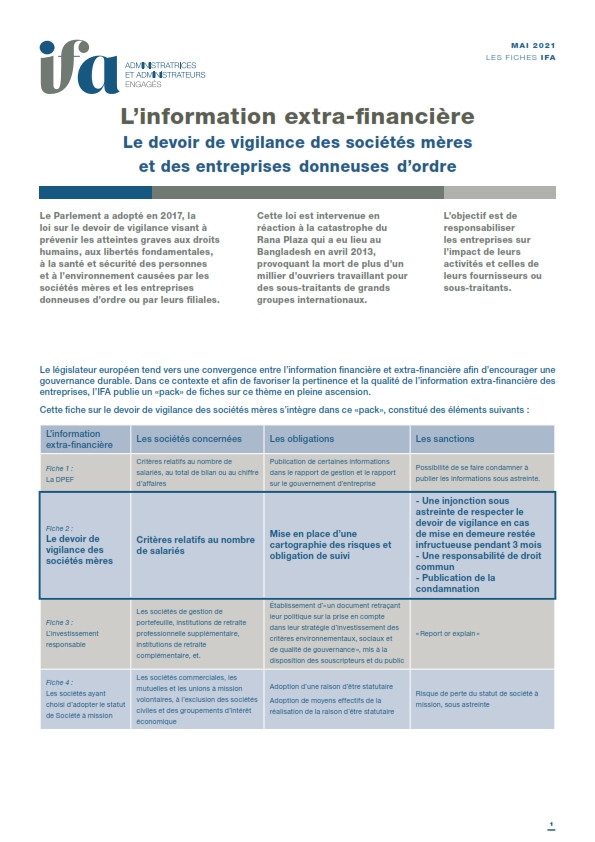 Fiche IFA - devoir de vigilance des sociétés mères et des entreprises donneuses d’ordre