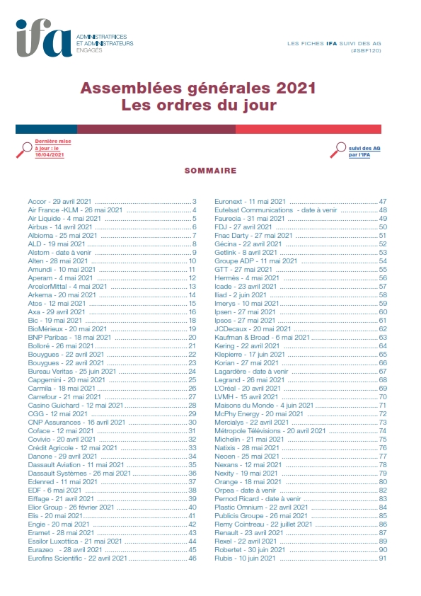 Les informations communiquées par l’IFA à l’occasion du suivi des AG 2021 sont obtenues auprès des meilleures sources, sélectionnées avec soin et ne sont communiquées qu’à